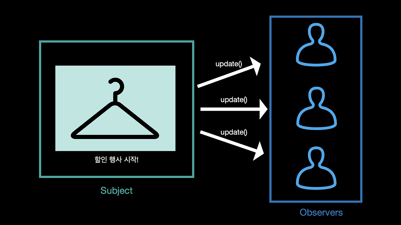์๋์ ๋ณด๋ด๋ ์ท๊ฐ๊ฒ๋ฅผ Subject, ์๋๋ค์ Observer๋ผ๊ณ ํ๋ค.